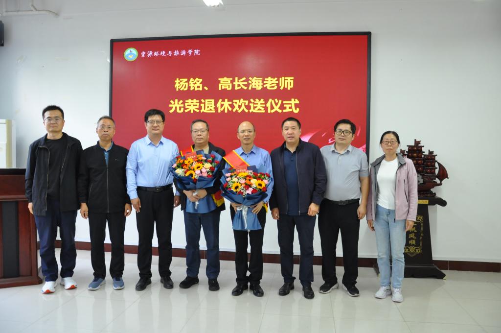 9月19日下午,资源环境与旅游学院为杨铭老师、高长海老师隆重举行光荣退休欢送仪式。离退休职工工作处党委书记王勇应邀出席,学院领导班子及全体教职工共同参与。仪式由院党委书记何方主持。
